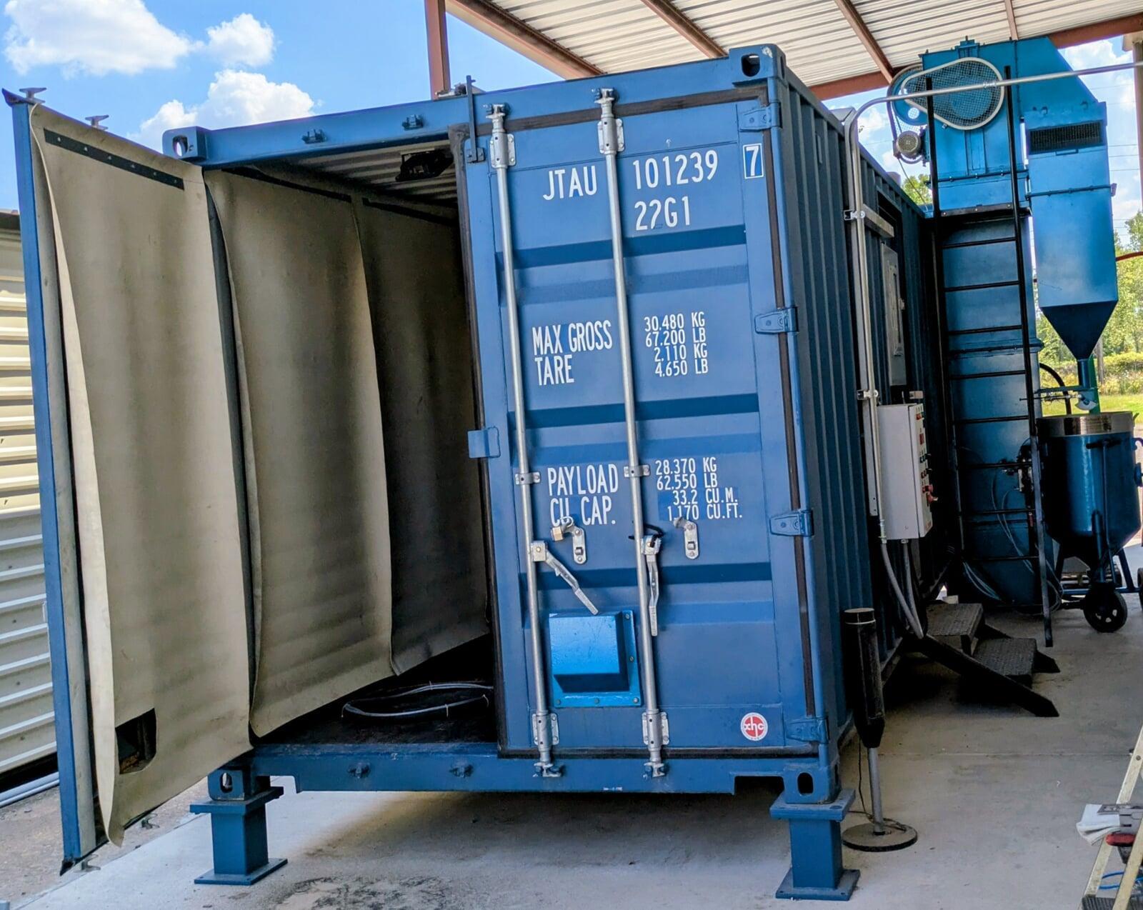 Blast room equipment is used in a wide variety of industries that require surface preparation. The surface of the work piece is cleaned with the abrasive media propelled by the blast nozzle with compressed air being directed toward the work piece. The blast system recycles the abrasive with the bucket elevator system and cleans the blast media through the air wash separator. The blast room provides lighting & ventilation for the operator's safety and good visibility. The cartridge dust collector collects all the airborne dust as well as the broken down abrasive.